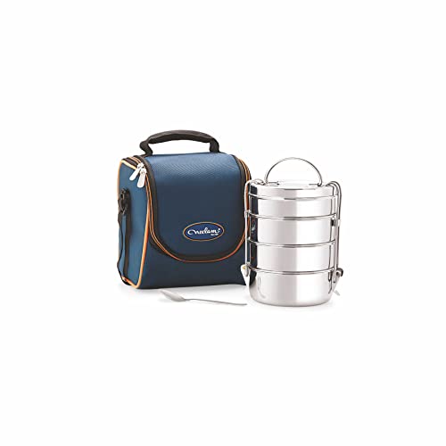 neelam Stainless Steel Dura Hot Food Carrier 4 Tier 8 Inch Big Container Lunch Box with Insulated Carry Bag, Silver at just Rs.589 only