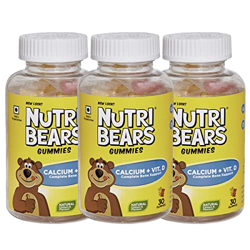 NutriBears Calcium and Vitamin D Gummies for Kids and Teens, Pack of 3, Natural Gelatin Free Vegetarian Supplement at just Rs.599 only
