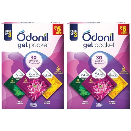 Odonil Gel Pocket Mix - 60g (Pack of 30gx2) (Assorted pack of 3 new fragrances) | Infused with Essential Oils | Germ Protection | Lasts Up to 30 days | Air Freshener at just Rs.198 only