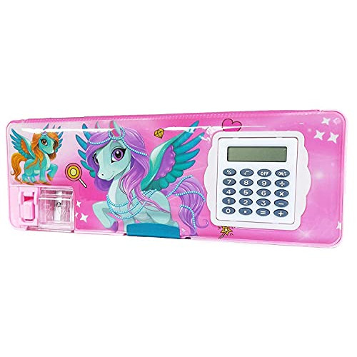 P. N. STORE Multipurpose Pencil Box with Calculator & Dual Sharpener for Girls & Boys for School, Big Size Cartoon Printed Pencil Case, Birthday Gift at just Rs.229 only