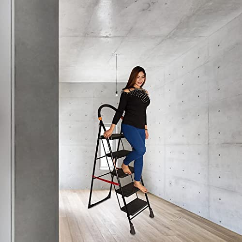 Parasnath Black Diamond Ladder 5 Step Heavy Folding Step Ladder with Wide Step 5.1 FT Ladder Made in India
