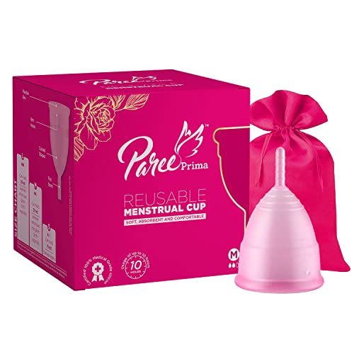 Paree Prima Reusable Menstrual Cup Medium Size with Protection Pouch| Medical Grade Silicon | Super Soft, Rash & Leak Free | Upto 10 Hour Protection | FDA Approved