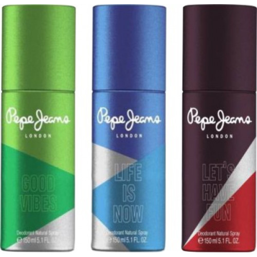Pepe Jeans GOOD VIBES LIFE IS NOW & LET'S HAVE FUN Deodorant Spray - For Men(450 ml, Pack of 3) at just Rs.350 only