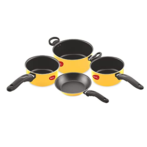 Pigeon Master Chef Non-Stick Aluminium Cookware Set Non-Induction Base Includes (3 Sauce Pan - 1 L, 1.5 L & 3 L, Fry Pan) - 4 Piece (Yellow)