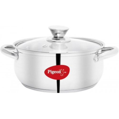 Pigeon Special Stainless Steel Belly Casserole 20cm with Glass Lid Cook and Serve Casserole(2 L) at just Rs.519 only