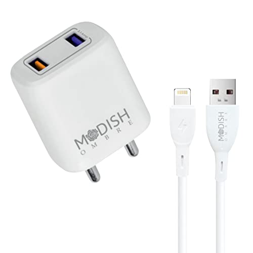 PowerDuoCharge Pro USB Charger | Dual Port 5V/3.1 A Wall Charger | SmartCharge Technology & SafetyGuard Protection USB Wall Charger Adapter Compatible with iPhone 11/Xs/XS Max/XR/X/8/7/6/Plus, iPad Pro/Air 2/Mini 3/Mini 4, and more ( Free Basic lightning Cable 18Watt ) at just Rs.229 only