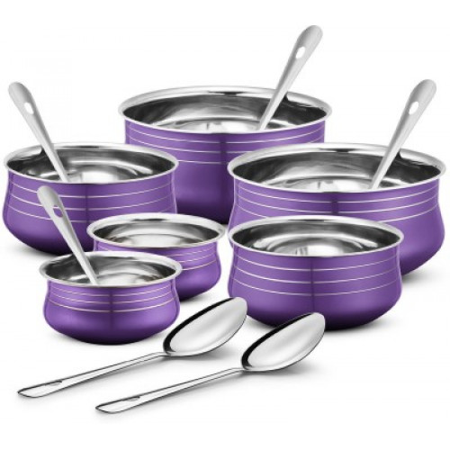 [Pre-Book] Ideale Stainless Steel 6 Pcs Handi Set with 6 Pcs Service Spoon Induction Bottom Cookware Set(Stainless Steel, 12 - Piece) at just Rs.927 only
