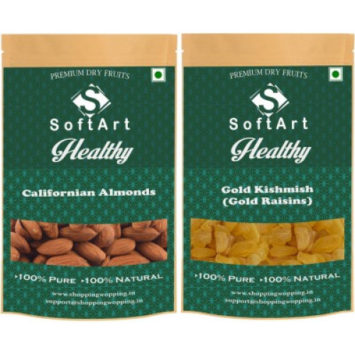 [Pre Book] Soft Art Healthy Californian Badam Gold Kishmish (500g Each) Gold Raisins, Almonds(2 x 500 g) at just Rs.637 only