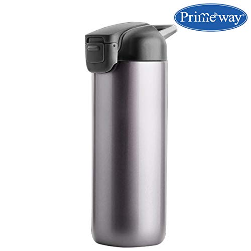 Primeway Stainless Steel Suction Multipurpose Travel Bottle That Won't Fall Over, 450ml, Grey