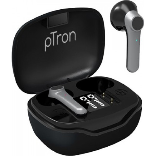 PTron Basspods 281 In-Ear True Wireless Bluetooth 5.1 Headphones with Deep Bass, Touch Control, IPX4 Sweat/Water-Resistant, Stereo Calling & Passive Noise Canceling Earbuds (Black/Grey) Bluetooth Headset(Black, Grey, True Wireless)