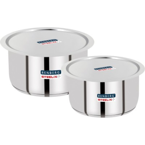 Renberg Steelix Plus Tope Set with Lid 3.5 L, 4.3 L capacity 20 cm, 22 cm diameter(Stainless Steel, Induction Bottom) at just Rs.699 only