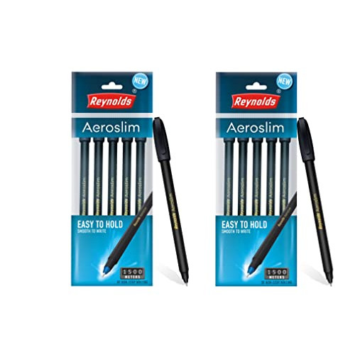 Reynolds AEROSLIM BP - 5 CT POUCH - BLACK (PACK OF 2) I Lightweight Ball Pen With Comfortable Grip at just Rs.38.68 only