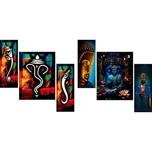 SAF Religious Combo Set - Set of 3 Lord Ganesha Modern Art Beautiful Painting (12 X 18 Inch) & Set of 3 Lord Buddha Green Beautiful Large Painting (12 X 18 Inch) at just Rs.281 only