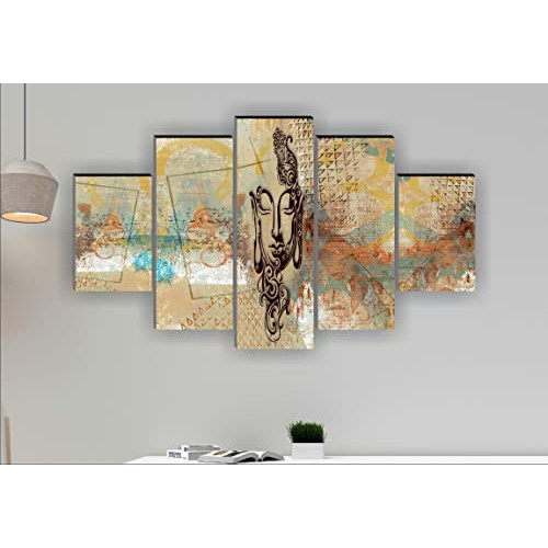 • Deals, Discounts & Offers on  - SAF Set Of 5 Gautam Buddha Wall Painting With Frame For Home Decoration , Living Room Office , Hotel (76 X 45 CM ) Multicolor , Theme : Religious SANFPNLS31196