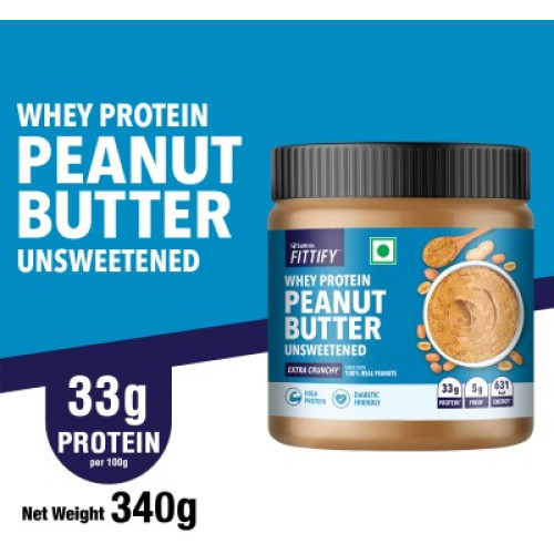 Saffola Fittify Whey Protein Peanut Butter Unsweetened Extra Crunchy 340 g at just Rs.114 only
