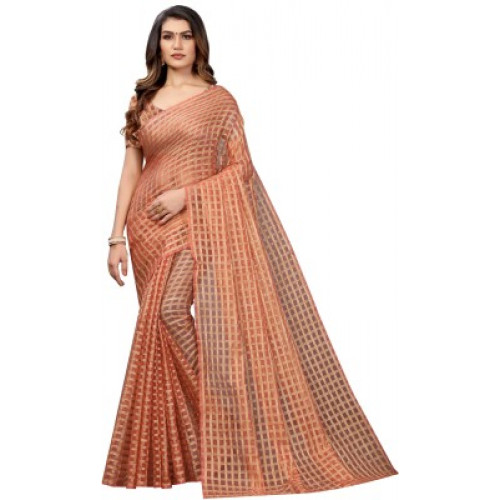 • Deals, Discounts & Offers on  - Saree CollectionStriped Fashion Brasso Saree(Gold, Pink)