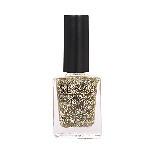 SERY Color Flirt Nail Paint Glitter, High Glossy shine, Chip-Resistant, 6 days long lasting, Enriched with Avocado oil and Vitamin E, Gold Sheen, Gold Glitter, 10ML