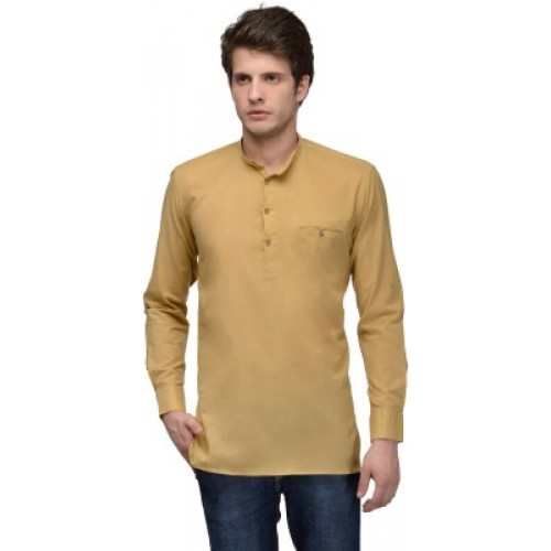 [Size 38] Feed UpMen Solid Cotton Blend Straight Kurta(Beige) at just Rs.245 only