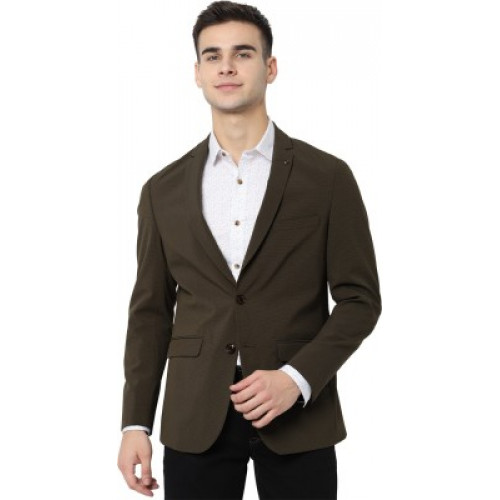 [Size 40] Allen SollySelf Design Single Breasted Casual Men Full Sleeve Blazer(Dark Green) at just Rs.1799 only