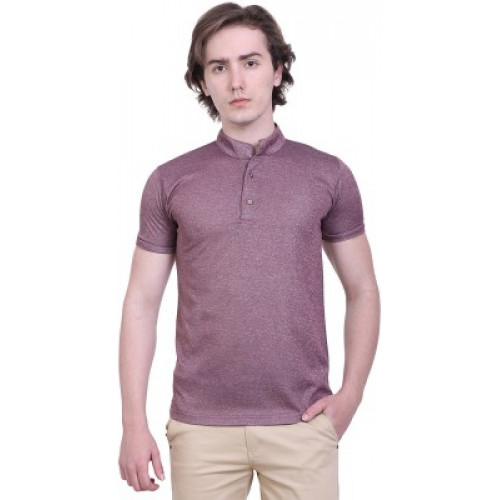 [Size M, L] LAMBENCYSelf Design Men Polo Neck Maroon T-Shirt at just Rs.212 only