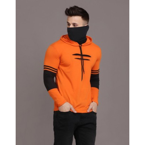 [Size S] SIDKRTMen Color Block Hooded Neck Pure Cotton Orange T-Shirt at just Rs.187 only