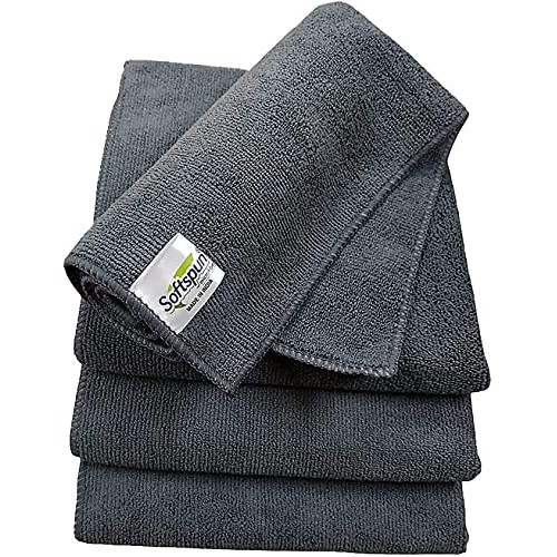 SOFTSPUN Microfiber Cloth - 4 pcs - 40x40 cms - 340 GSM Grey- Thick Lint & Streak-Free Multipurpose Cloths - Automotive Microfibre Towels