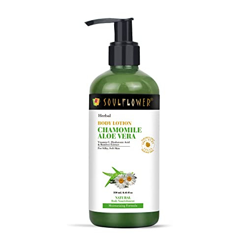 Soulflower Body Lotion with Aloe vera, Vitamin C, Chamomile, Hyaluronic Acid & Bamboo Extractfor Dry Skin, Hydration, Daily Moisturization & Nourishment, 250ml at just Rs.204.24 only