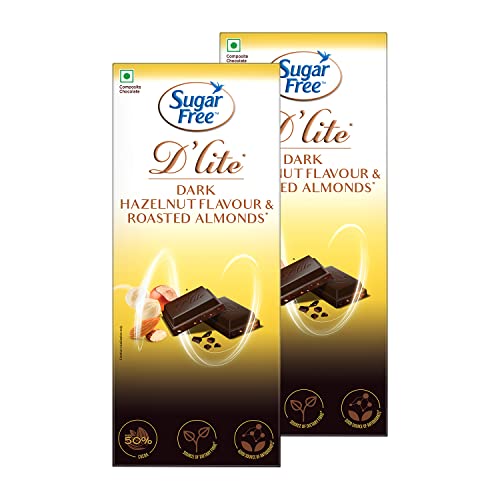 Sugar Free D'lite Hazelnut & Almonds Dark Chocolate Bar, 80 Grams (Pack of 2) at just Rs.174.74 only