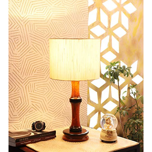 tu casa Ntu-237 Off White Cotton Shade Table lamp with Wood Base Holder type--b-22 (Bulb not Included)