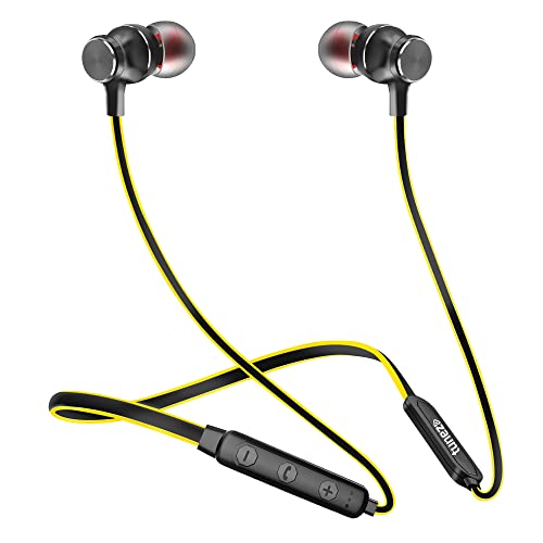 tunez Rhythm R27 in Ear Wireless Neckband with 20 Hours Play Time, Fast Charging,IPX5 Water Resistant, Bluetooth V5.0, in Built mic,10mm Driver, Deep Bass Sound and Voice Assistant(Black,Yellow)