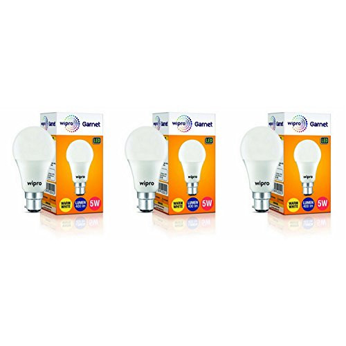 wipro Garnet Base B22 5-Watt LED Bulb (Warm White) -Pack of 3 at just Rs.280.22 only