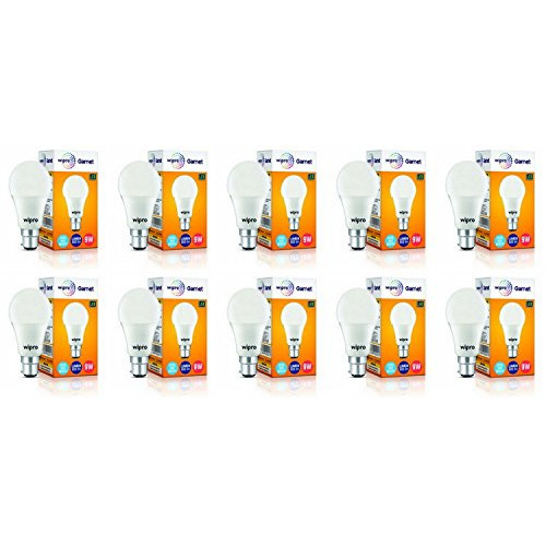 wipro Garnet Base B22 9-Watt LED Bulb (Cool Day Light) - Pack of 10 at just Rs.695.35 only
