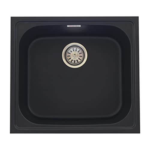 ZINZER Quartz Sink in Black Color 21x19x8 Inches | Kitchen Sink in Single Bowl Model | Non Fading Granite Sink | Rust Free | Smooth Finish | Kitchen Sink, Sink Coupling, Basket, Drain Pipe at just Rs.2748 only